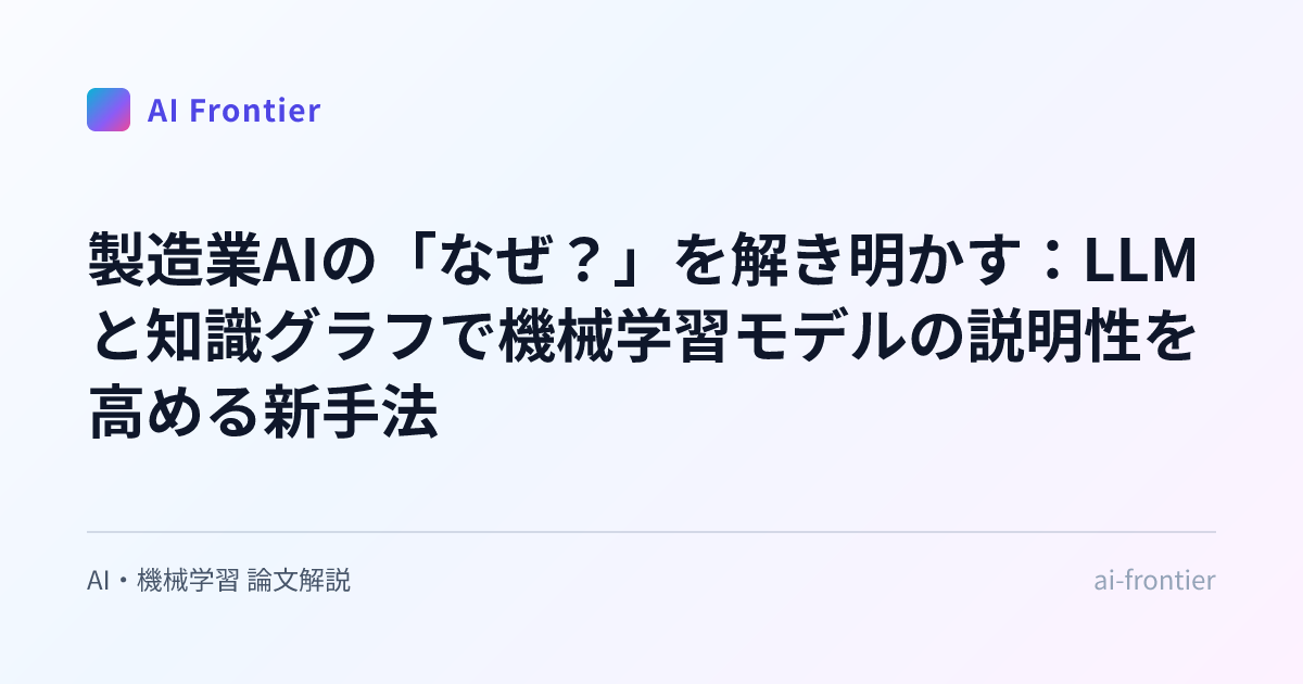 本記事では、製造業における機械学習モデルの説明性向上を目指し、大規模言語モデル(LLM)と知識グラフ(KG)を組み合わせた革新的な手法について解説しました。