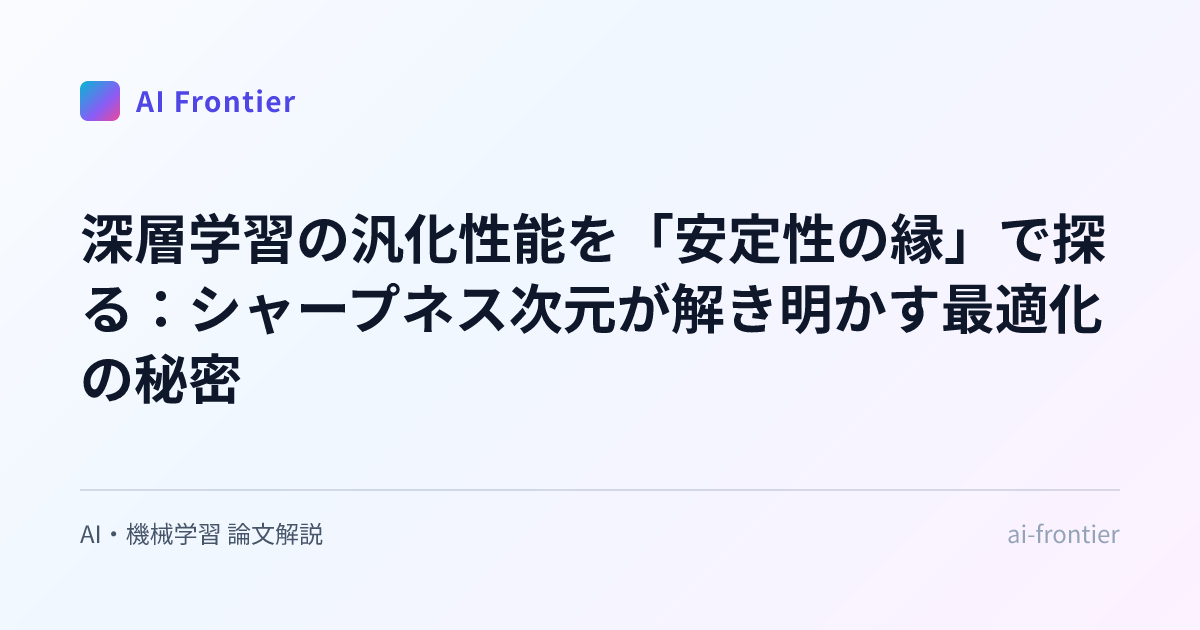 - モデル評価とデバッグ: シャープネス次元のような新しい指標を用いることで、モデルがどの程度「安定性の縁」で訓練されており、どの程度の汎化性能が期待できるかを、より深く評価できるようになるかもしれません。これは、訓練プロセス中のモデルの挙動を理解し、デバッグする上で役立つでしょう。