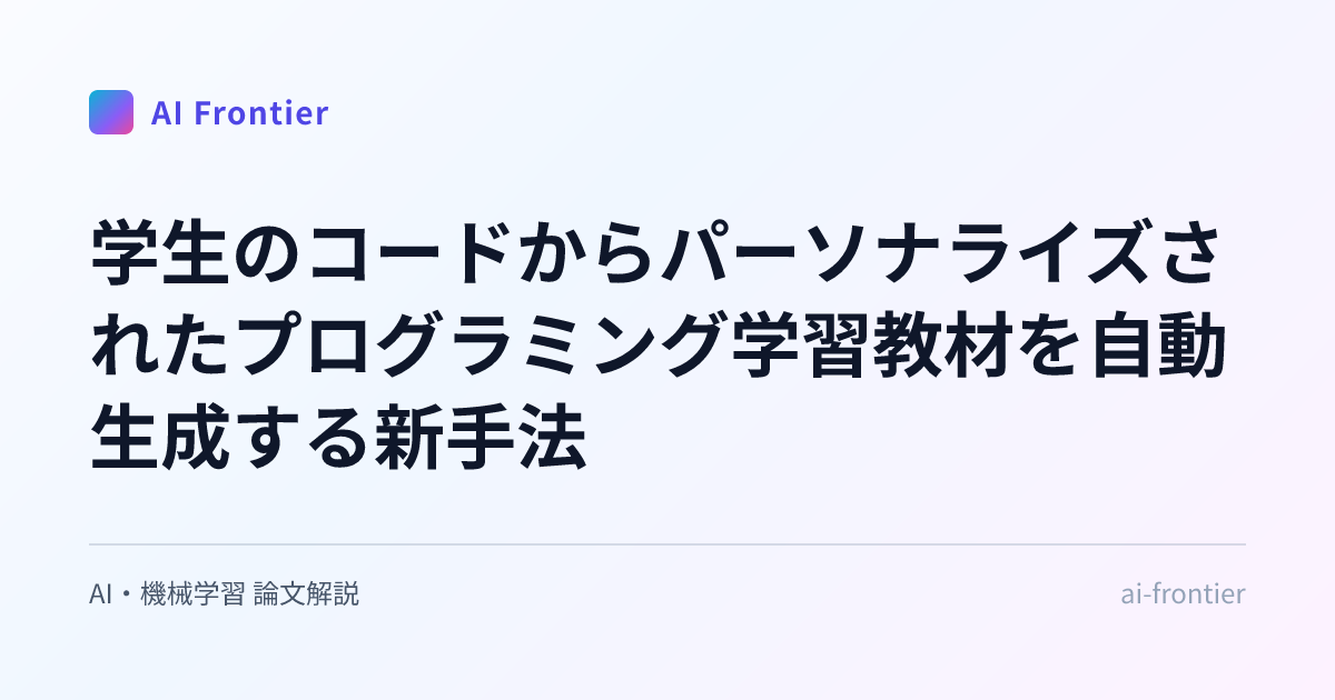 この技術は、教師のコンテンツ作成負荷を軽減しつつ、学習者にはより質の高い、個別最適化されたフィードバックを大規模に提供することを可能にします。プログラミング教育の未来において、学習効率とエンゲージメントを飛躍的に向上させる可能性を秘めた、非常に重要な一歩と言えるでしょう。