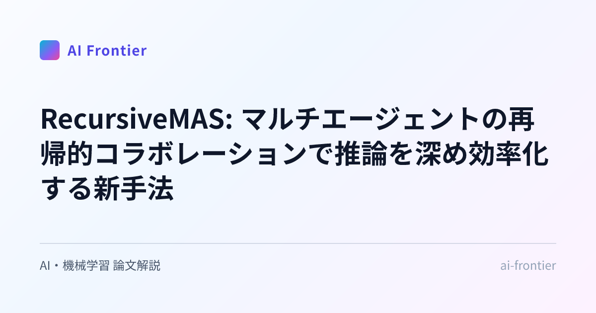 本記事では、マルチエージェントシステムの協調を再帰的な潜在空間計算として再定義する新たなフレームワーク「RecursiveMAS」について解説しました。