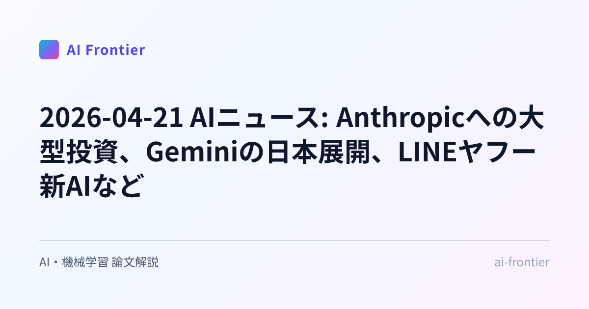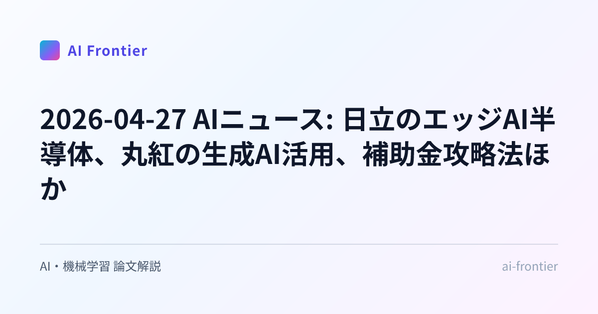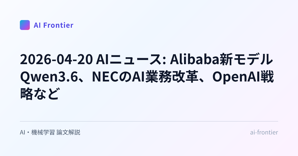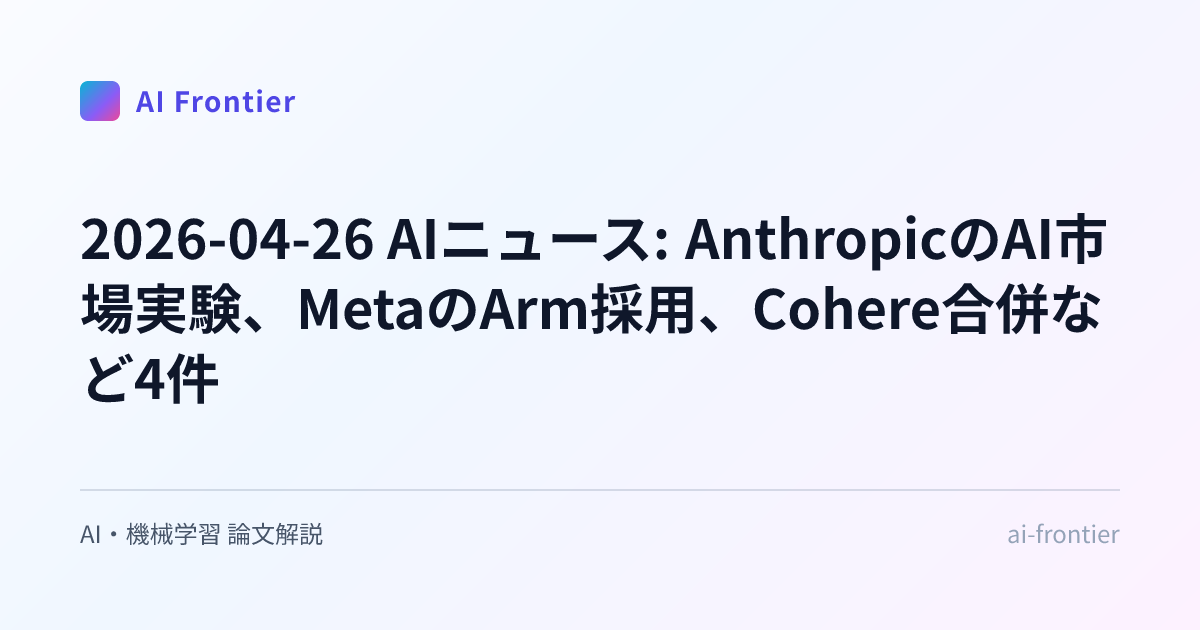 英語で書かれた研究論文や海外のAIニュースを読むのは時間がかかります。 AI Frontier は、そのハードルを下げるための実験的プロジェクトです。毎日公開される3本の記事から、あなたの関心に近いものだけ拾い読みしてください。